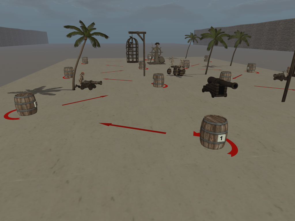 The Rum Runner course is a 13-barrel route with a 360-degree lynchpin. The course snakes through palm trees, pirate skeletons and cannons. “I love this course!” exclaimed Miss Winnie (winnie.sweetwater) after running it, notwithstanding faulting on nearly ever barrel. Scratching her head, she added, “I just don’t understand why Mule limited this to only five runs.”